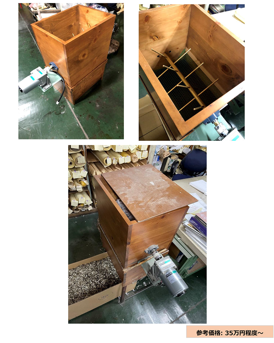 実例③: 粉砕機: 美術品製造のR社様(広島市)向けに、金箔を細かく裁断する回転マンシを製作しました。