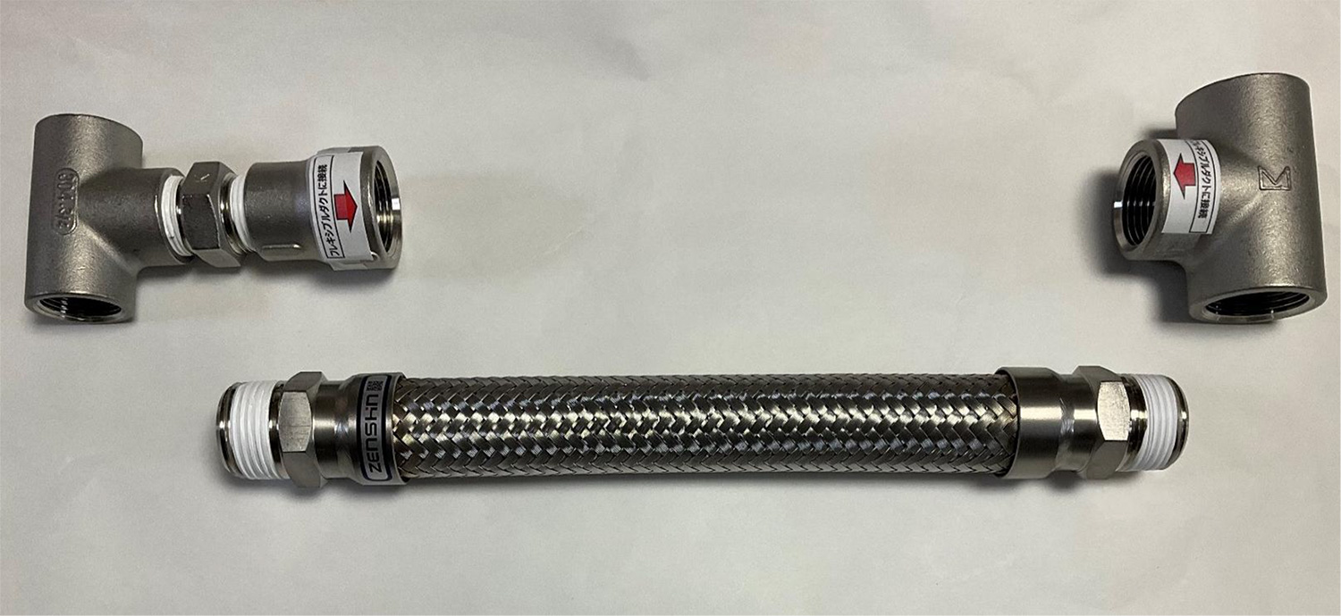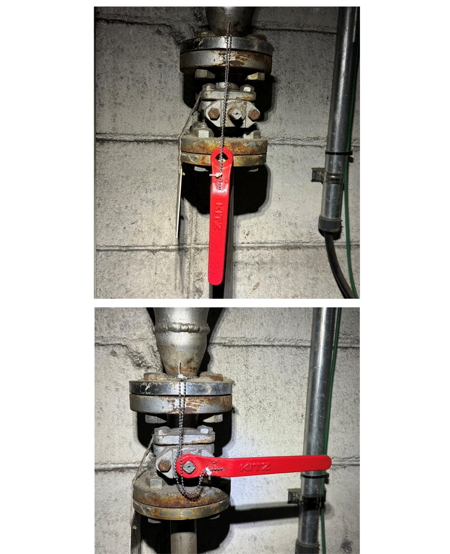 お客様の使い勝手を考え、無くしたり、いざ必要な時にすぐ使えるように、バルブハンドルにチェーンを通し、バルブに吊り下げました。